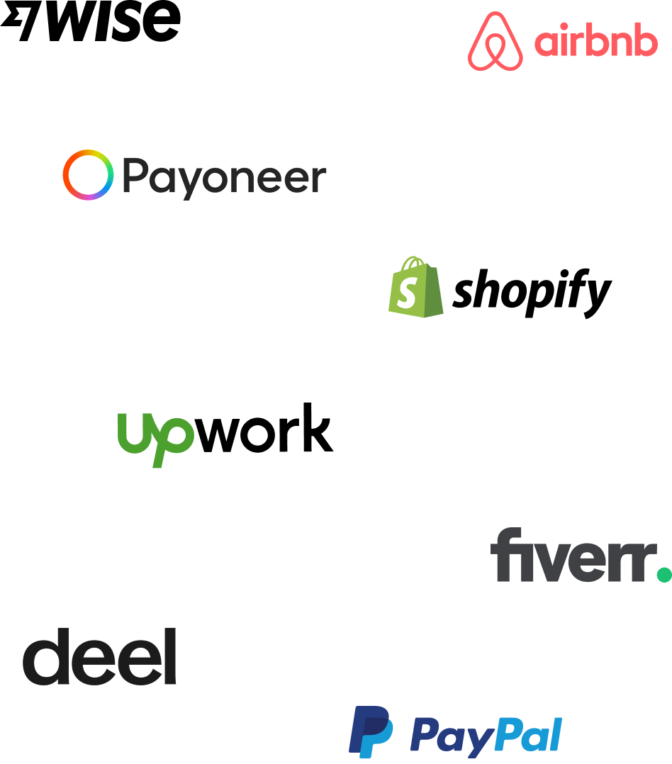 You’ll get your own virtual ACH (USD) and SEPA (EUR) account details. This means you can receive payments directly from clients or popular platforms like Upwork, Airbnb, Fiverr, Amazon, PayPal or Shopify.